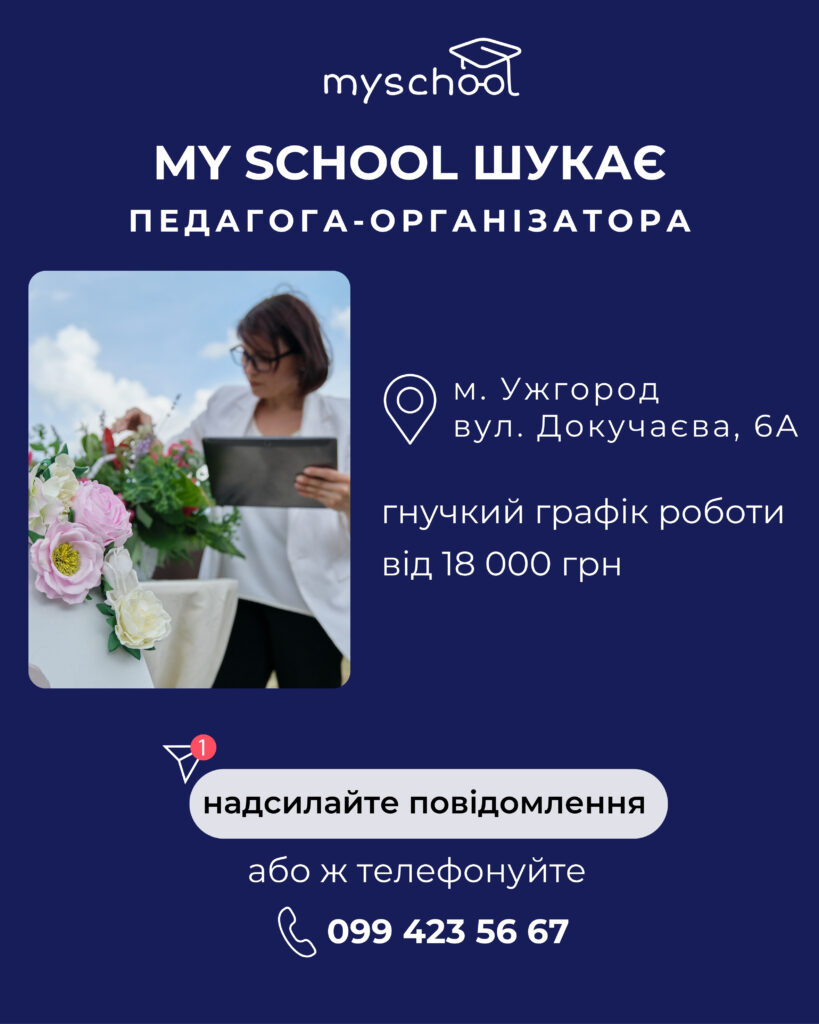 Ліцей My School запрошує у свою команду педагога-організатора — активного,